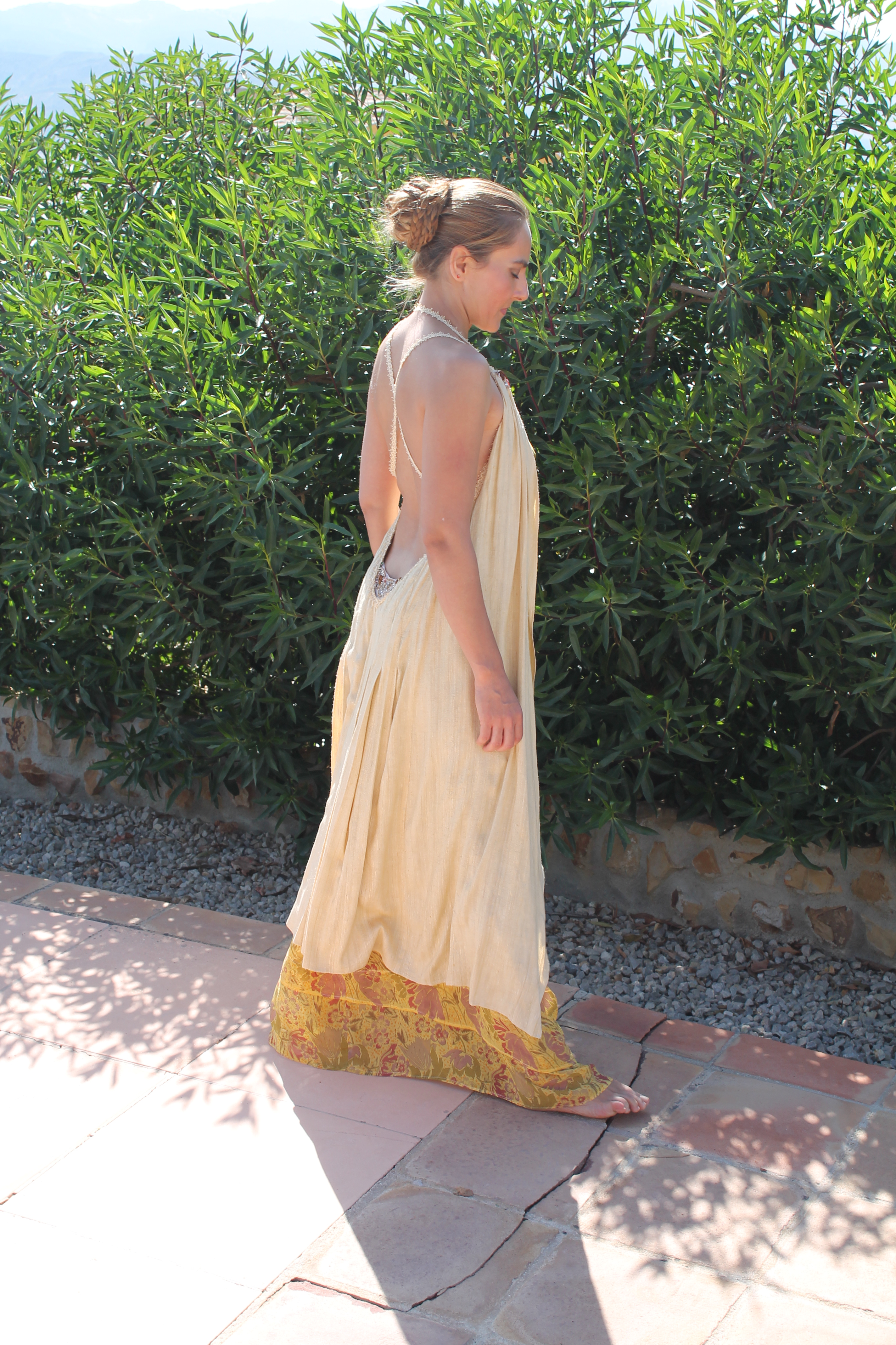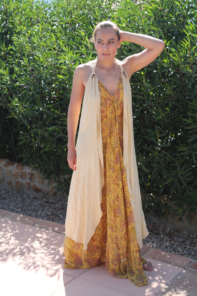 Suit made of natural silk and printed silk chiffon.