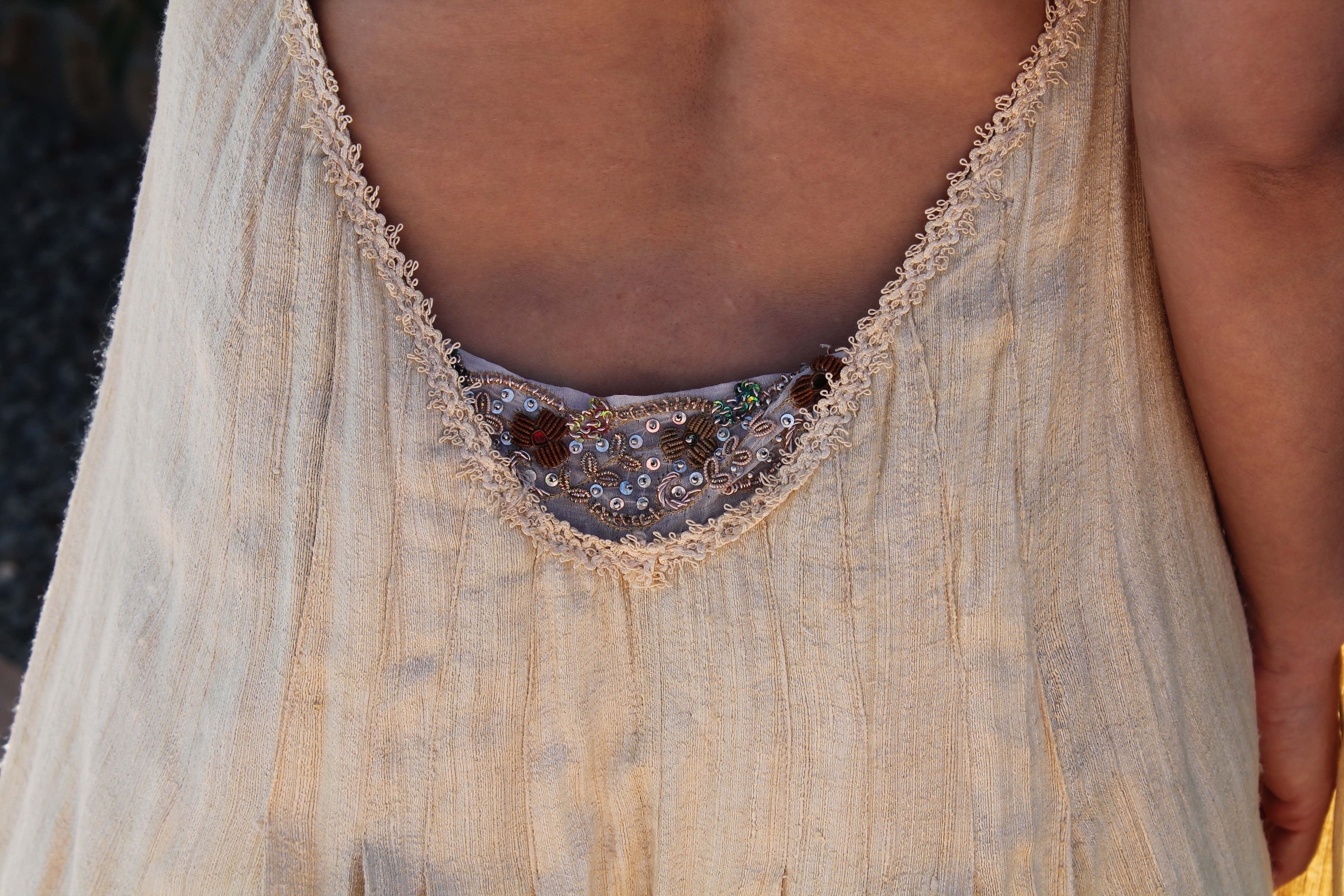 Bordado a mano con cristales de Swarovski y oro rojo, viejo y amarillo.