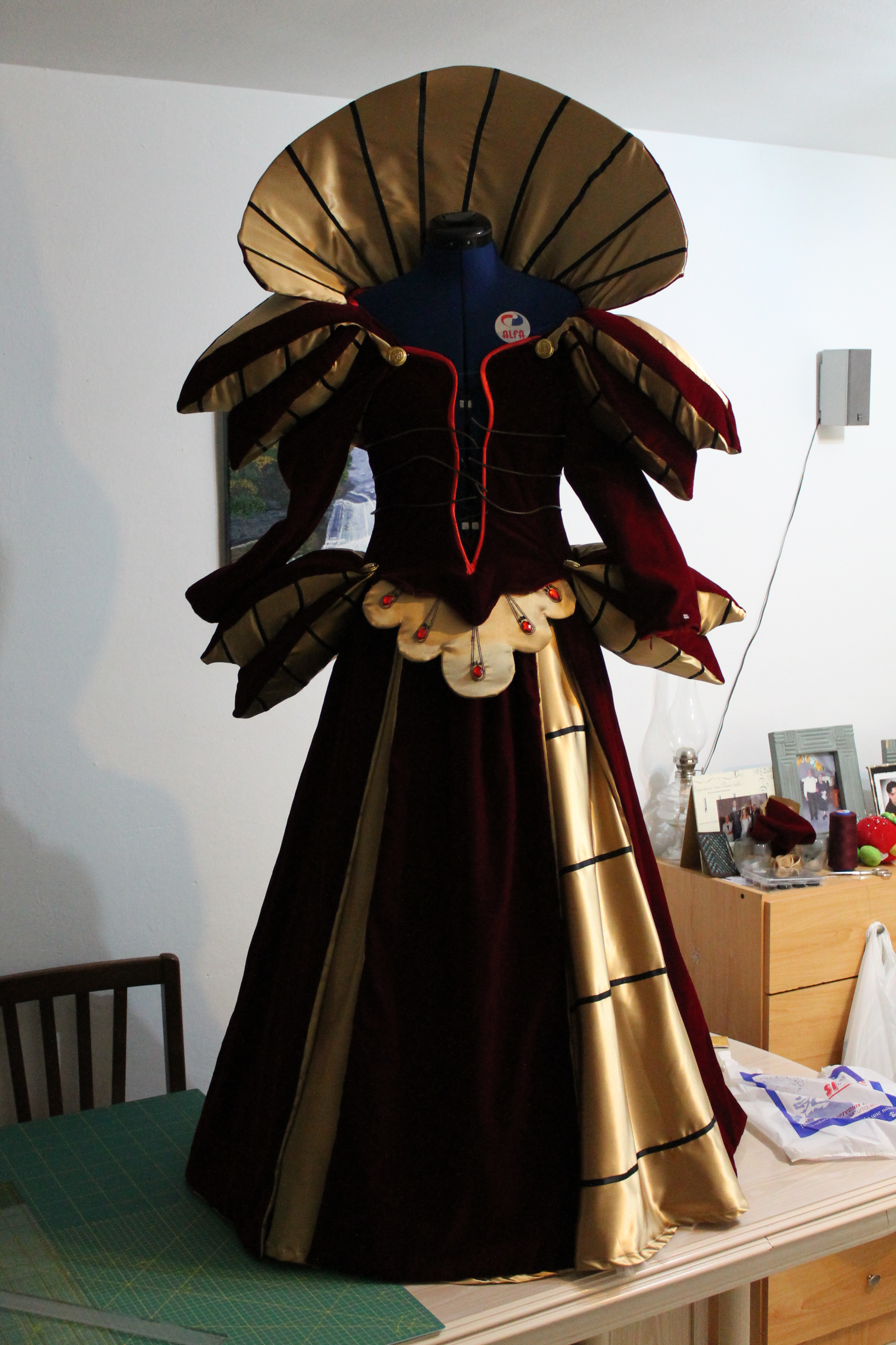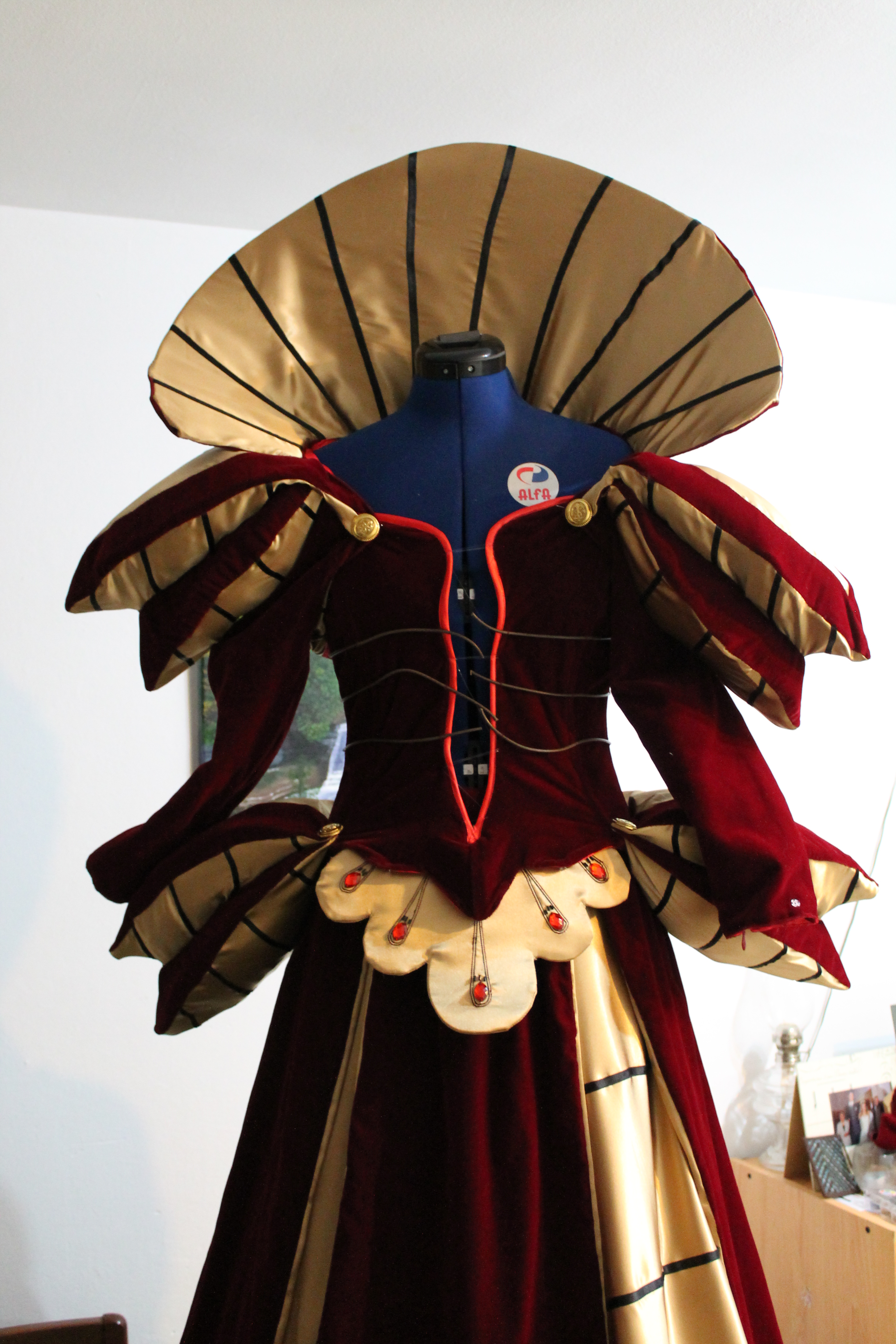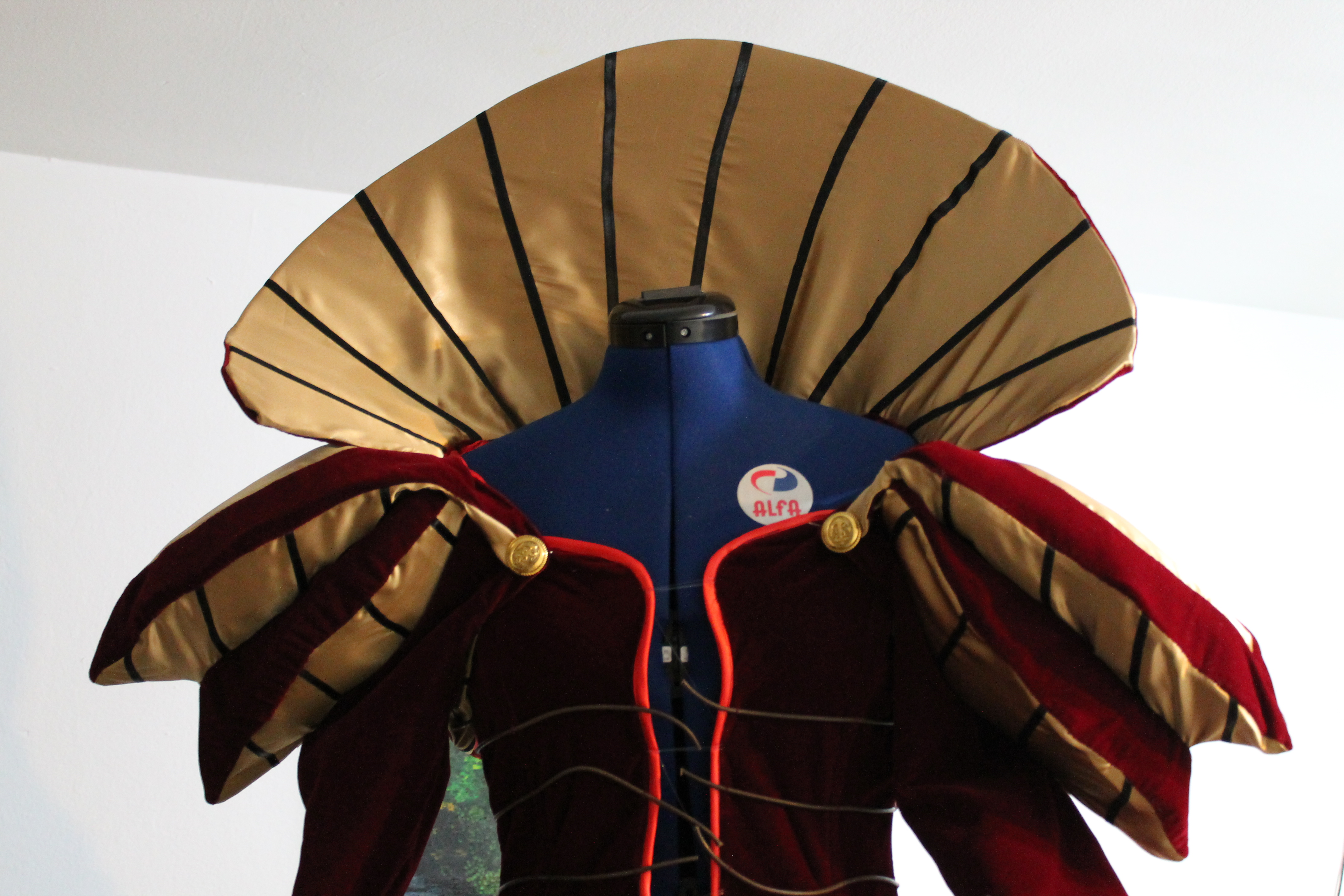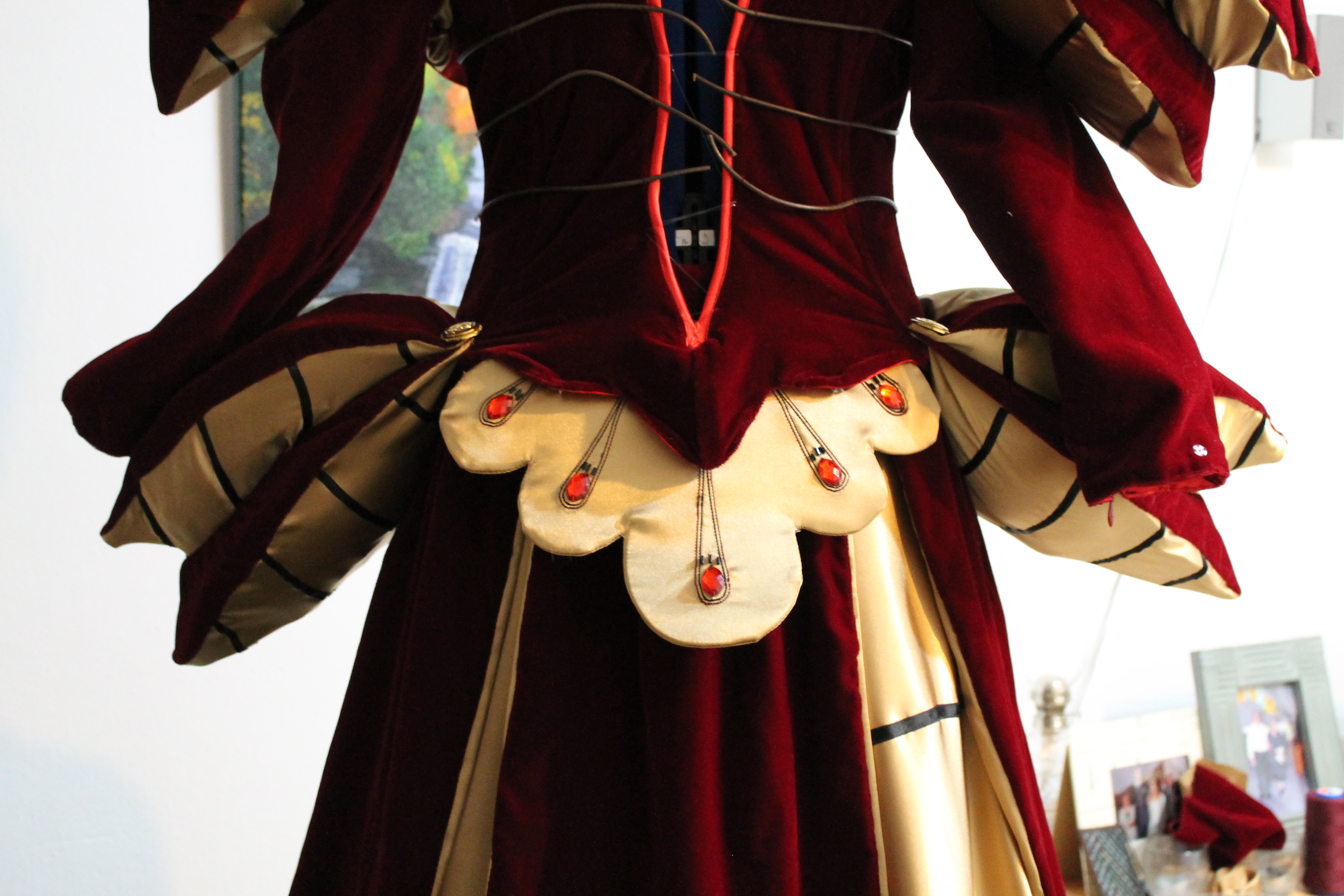Hand-embroidered with Swarovski crystals and red, old and yellow gold.