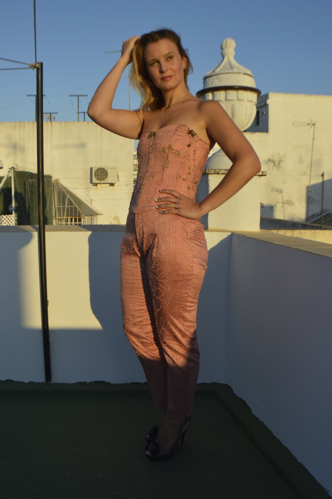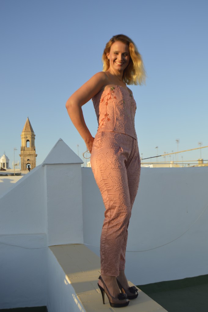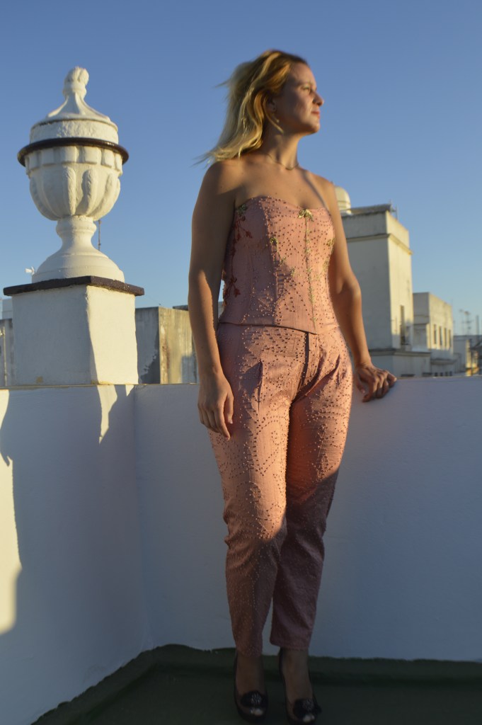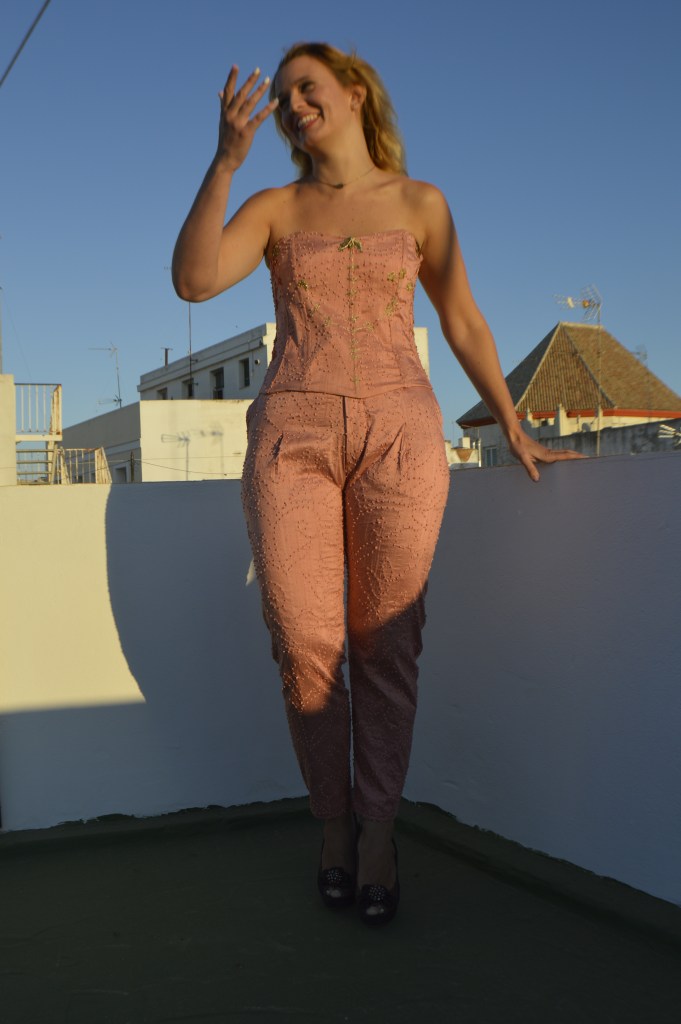 Bordado a mano con cristales de Swarovski y oro rojo, viejo y amarillo.